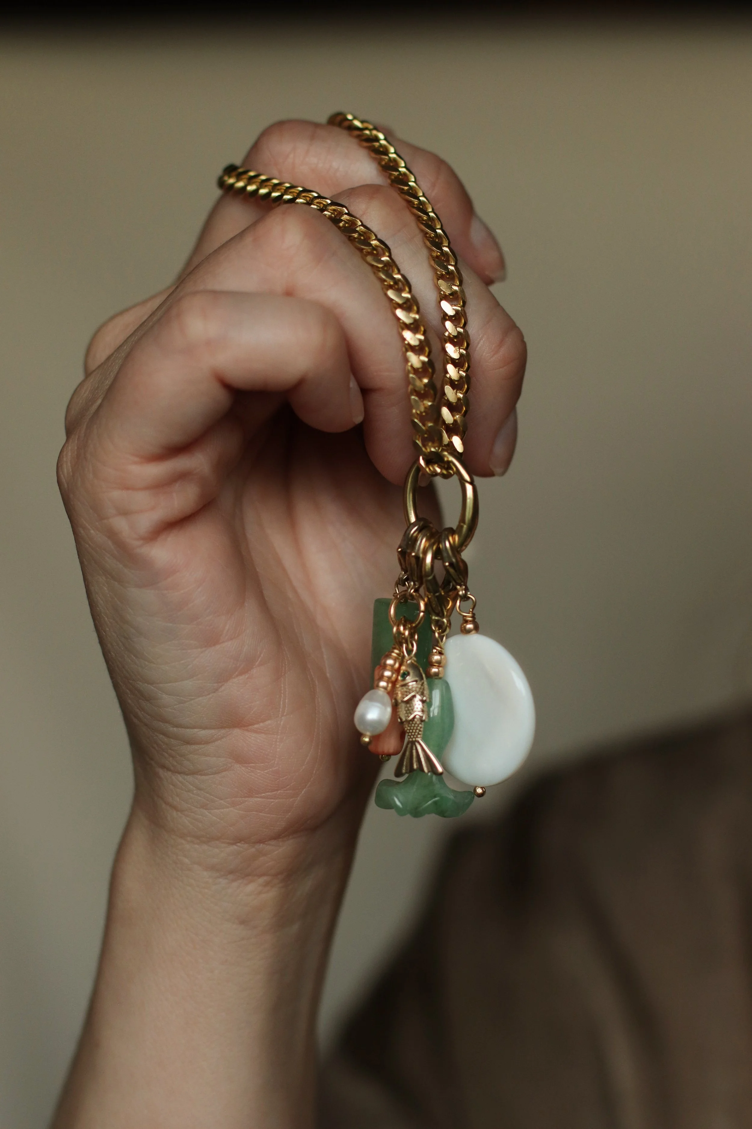 Set of 5 charms. Each charm has its own sold brass lobster clasp allowing you to add it to any necklace or bracelet! Each charm slides off the main charm keeper clasp - and this large clasp also allows you to mix match and add it to anything! A necklace, a bag, get creative!